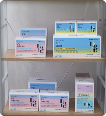 이 다이어트 프로그램에는 단순한 기기 관리뿐 아니라 ‘바이브이펙트 Do It 시리즈’ 제품군도 함께 복용합니다. 체내 순환·지방 연소를 돕는 멀티팩, 퍼펙트워터, 패밀리포션을 함께 복용했어요.