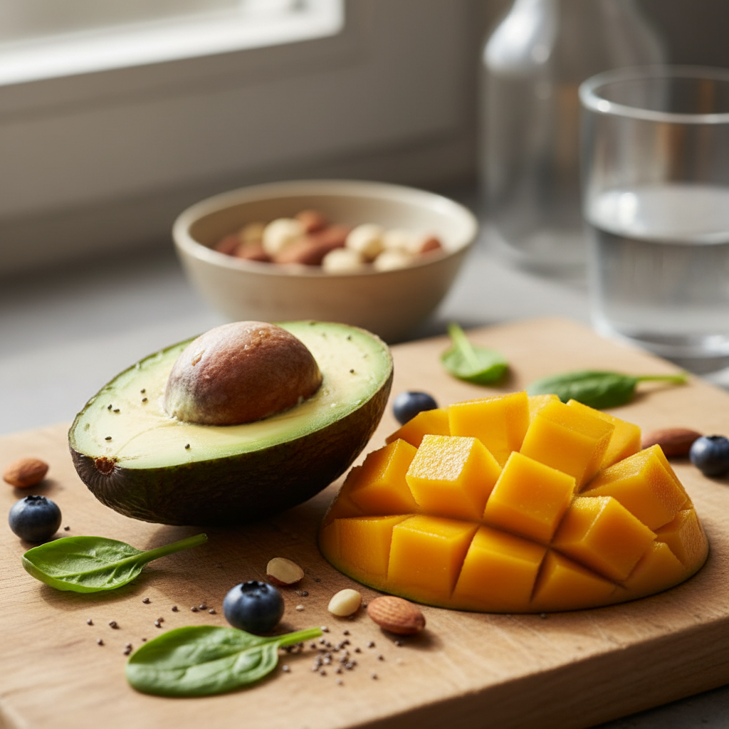 아보카도와 망고는 각각 건강에 유익한 다양한 영양소가 풍부한 과일입니다. 아보카도는 건강한 지방과 섬유질의 왕국으로 알려져 있습니다. 특히, 오메가-3와 오메가-6 지방산이 균형 있게 포함되어 있어 심혈관 건강에도 좋습니다. 또한, 철분, 칼륨, 비타민 E 및 K 등도 다량 포함되어 있습니다.