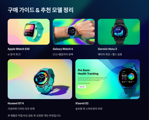- 수면·스트레스·심박 비교 가능한 워치 선정